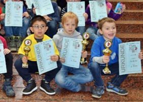 Schachlich am erfolgreichsten war einmal mehr Offenbachs jüngster Vertreter. Filip gewann mit 6/7 das separate U8-Turnier recht souverän und freute sich zu Recht über einen schönen Pokal! Zu der starken Leistung unter den 18 Teilnehmern dieser Altersgruppe gratulieren wir herzlich!