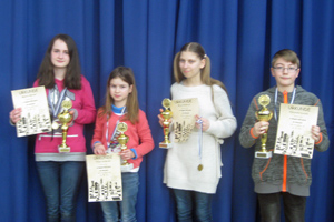 Die Offenbacher Teilnehmer schlugen sich bei der starken Konkurrenz wacker. Emil holte 50% aller Punkte und Luca stand ihm nur einen halben Punkt nach. Willie schaffte 2,5/7, beachtlich für das erste Vereinsturnier überhaupt. Mit ein bisschen Turnierroutine winken da bald schon höhere Platzierungen. Rosalie wie auch ein paar weitere hessische Starterinnen probierten ihre Strategien für die Hessenmeisterschaft in Bad Homburg aus. Bei Rosalie gelang dies meist excellent. Der spätere Turniersieger wurde in nur sechs Minuten vom Brett gefegt. Aufgrund einer Niederlage gegen eine gute Freundin aus dem Hessenkader reichte es am Ende aber „nur“ zu einem hervorragenden zweiten Platz in der Gesamtwertung, der mit einem schönen Pokal belohnt wurde. Die Generalprobe vor dem ZL (siehe separater Bericht dazu unten) war also gelungen! Naina, noch ohne DWZ, hatte es in der U16 mit sehr spielstarken Gegnern teilweise jenseits der 2000er Marke zu tun. Ihre 2/7 ist daher ebenfalls beachtlich. Wir freuen uns, dass alle Kinder und Jugendlichen samt Jugendleiter Udo Lanz mit viel Spaß beim Turnier „um die Ecke“ dabei waren und bedanken uns bei den Königsspringern Alzenau für die perfekte Organisation und Verpflegung der Teilnehmer. Hier noch ein paar Impressionen: