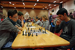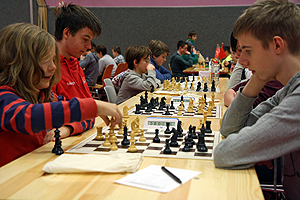 Eine Altersklasse höher spielte die Leibnizschulmannschaft ebenfalls um vordere Plätze. Zwei Finalgegner konnten dabei sogar jeweils einen WM-Teilnehmer aufbieten. Die Leibnizschüler VSGO-Mitglieder Dominik, Tom, Marc und Maxim ließen sich davon aber nicht erschrecken und erlangten mit zwei Siegen, einem Remis und zwei knappen Niederlagen ebenfalls einen hervorragenden vierten Platz.
