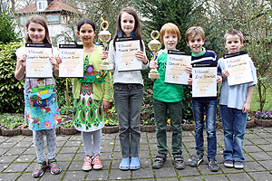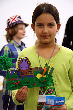 Den Start machten vom 1. bis 3. April Dominik, Rosalie, Josi, Laura, Florin und Eric in der U10. Alle sechs Kinder spielten ein hervorragendes Turnier. Dominik wiederholte seinen Vorjahreserfolg und gewann mit 6 von 7 möglichen Punkten erneut die Vizehessenmeisterschaft. Rosalie tat es ihm gleich und sicherte sich in der Mädchenwertung mit 4,5 aus 7 ebenfalls die Hessische Vizemeisterschaft. Ganz besonders freuten sich beide Kinder, dass mit diesen Platzierungen auch die Qualifikation für die Deutsche Meisterschaft in Willingen rund um Pfingsten gelungen ist. Die ganze VSGO gratuliert herzlich und wir freuen uns, dass wir gleich zwei Jugendliche für das Turnier der besten deutschen Nachwuchsspieler entsenden dürfen. Josi und Laura als viert- und fünftbeste Mädchen schrammten mit 4/7 lediglich in der Buchholzwertung an einem Treppchenplatz vorbei. Wie die beiden Mädchen holte Florin als jüngster VSGO-Spieler und eigentlich noch U8-Teilnehmer mit 4/7 Punkten mehr als die Hälfte aller Punkte. Eric folgte knapp dahinter mit 3/7. Neben dem Schachspielen wird den Kindern in Bad Homburg jedes Jahr ein umfangreiches Freizeitprogramm mit Schwimmbad, Minigolf und vielem mehr geboten. Laura gelang bei einer dieser Aktionen noch ein ganz besonderer „Hattrick“. Zum dritten Mal in Folge konnten sie den Preis für das am schönsten gestaltete Namensschild nach Offenbach holen.