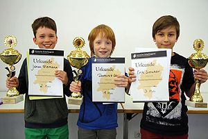 Von diesem schönen Wochenende und den Erfolgen getragen machten Dominik, Rosalie und Josi gleich noch eine Altersklasse höher weiter und traten in der U12 zu weiteren neun Partien von Montag bis Samstag an. Dominik legte bei stärkerer Konkurrenz sogar noch einen drauf und holte mit 8/9 Punkten die U12-Hessenmeisterschaft nach Offenbach! Eine kleine Sensation und ein ganz besonderer Erfolg, wenn man die Spielstärke der älteren Altersgruppe kennt. Rosalie wurde mit sehr guten 5/9 fünftbestes Mädchen, nur durch die Buchholzzahl von der Wiederholung des zweiten Platzes getrennt. Jan konnte sich mit 4/9 gegenüber dem Vorjahr ganz erheblich steigern und auch Josi konnte in der U12 im Mittelfeld gut mithalten. Weitere fünf VSGOler traten in der offenen U17 über sieben Runden an. Tom spielte ein sehr gutes Turnier und kämpfte in der letzten Runde dreineinhalb Stunden gegen den Ranglistenersten um einen Treppchenplatz, leider vergeblich. Mit 4,5/7 belegte er aber einen guten 10. Platz und konnte seine DWZ weiter steigern. Maxim machte gegenüber dem Vorjahr einen großen Sprung und wurde mit 4/9 unter den 45 Teilnehmern der Altersklasse 19. Sebastian landete mit 3,5/7 genau in der Mitte, Tim mit 2,5/7 und Kolja mit 2/7 rundeten das Teilnehmerfeld der VSGO ab. Ebenfalls gratulieren wir dem Offenbacher Albert-Schweitzer-Schüler Peter Keller zum Gewinn der U18! Leider spielt Peter Keller nicht für die VSGO, aber natürlich freuen wir uns über jeden Offenbacher Erfolg.