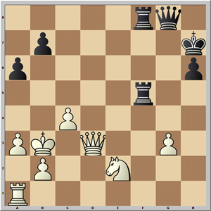 Auflösung der Rätselfrage: 42. … Sd4 wäre die bessere Fortsetzung gewesen und hätte den Abtausch Springer gegen Turm ermöglicht.