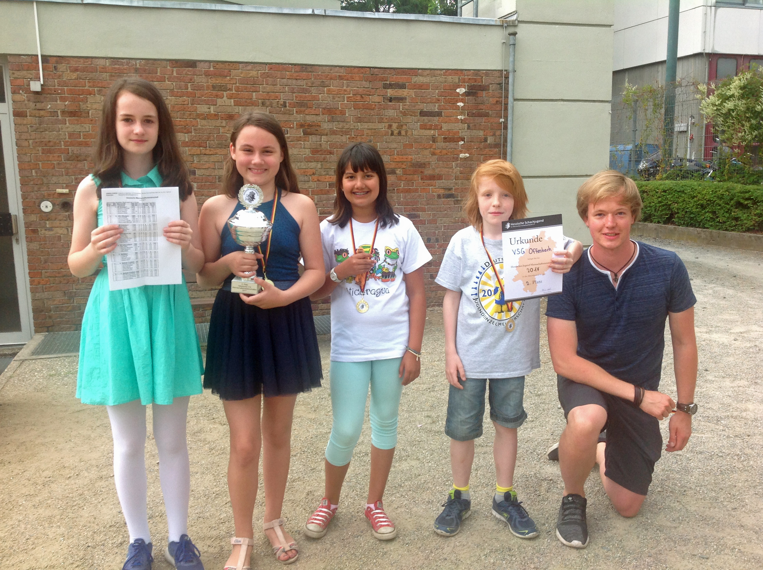 Das Schachforum Darmstadt und die Hessische Schachjugend richteten am Wochenende 24./25.6.2017 die Hessische U12-Mannschaftsmeisterschaft aus. Unter den neun Teams am Start war die VSG mit Dominik, Rosalie, Josi und Laura mit einer starken, erfahrenen Mannschaft am Start. Gleich in der ersten Runde wurde der Turnierfavorit aus Gründau zugelost, der eine Durchschnitts-DWZ von 1473 gegen die Offenbacher 1295 aufbot. Es stand also quasi ein schweres Endspiel am Beginn des Turnieres.