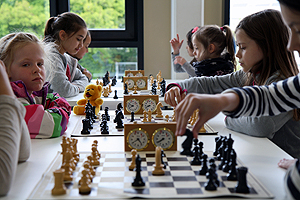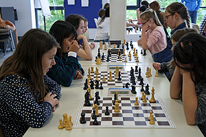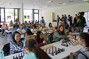 Los ging es gegen 10 Uhr mit einem neuen Teilnehmerrekord. Zehn Vereinsteams sowie 16 vereinslose Mädchen in sieben Zweierteams bedeuteten fast 60 Teilnehmerinnen! Eine großartige Voraussetzung für einen spannenden Turniertag. Die Vereinsmannschaften spielten im Modus jeder gegen jeden ein neunrundiges Turnier, die vereinslosen Mädchen sechs Runden bei längerer Bedenkzeit.