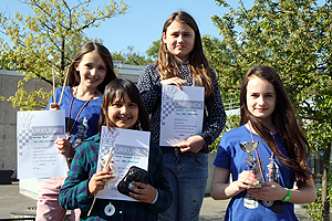 Im Turnier der Zweiterteams konnten sich am Ende die Hattersheimer Spielerinnen mit 9:3 Punkten durchsetzen. Da dieses Team aber nicht ganz vereinslos war, ging der Pokal für die beste vereinslose Mannschaft mit 8:4 Punkten an die erste Mannschaft der Montessori Schule aus Ingelheim! Unser beiden Offenbacher Mannschaften aus der Leibnizschule schlugen sich sehr achtbar. Leibniz I war mit 7:5 Punkten bis zur letzten Runde mit einer Hand am Pokal! Eine tolle Leistung. Die zugehörige Tabelle gibt es hier.