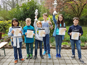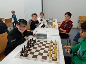 Am dritten Tag am Sonntag war dann die Kondition gefordert. Drei weitere, eng getaktete Partien galt es zu absolvieren. Und es wurde richtig spannend, zumal es in der siebten und letzten Runde zu zwei vereinsinternen Duellen kommen sollte. In einem furiosen Schlussspurt nutzte Florin seine gute Ausgangsposition und erreichte mit 5/7 einen hervorragenden siebten Platz unter allen Teilnehmern! Gegenüber dem Startplatz 14 war das nochmal eine deutliche Steigerung unter starker Konkurrenz. Mit nur einem halben Punkt weniger folgten Lennart und Merlin mit den gleichfalls hervorragenden Platzierungen 15 und 17 ebenfalls in den Top 20. Filip mit 4/7 und Benjamin mit 3,5/7 platzierten sich als 22. und 34. ebenfalls in der oberen Tabellenhälfte, eine rundherum starke Leistung der fünf Jungs! Kein Wunder, dass alle entweder ihre erste DWZ erspielen oder gleich deutlich steigern konnten.