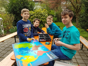 Nach der Siegerehrung stand dann noch der Zimmerwechsel an. Die U10 reiste ab und die älteren Spielerinnen und Spieler an. Dominik, Friedrich, Jan, Laura, Maxim, Rosalie und Tom traten in der U12 bzw. der U18 Open an. Neben dem schachlichen wurde auch hier ein sensationelles Freizeitprogramm mit Bowling, Tischtennis- und Fußballturnier, Minigolf, Singstar und vielem mehr geboten. Am Donnerstag gab es dann den ersten Freizeit-„Titel“ mit Offenbacher Beteiligung: Dominik und Tom holten als Mannschaft zusammen mit Ioannis Papadoupolos (Oberursel) und Calvin Wenzel (Gernsheim) den „Chess Total“-Titel. Von den vier Teammitgliedern spielen hierbei je einer Blitz, zwei Tandem und einer Räuberschach. Unter 36 Mannschaften mit knapp 150 Teilnehmern lässt diese Leistung es leicht verschmerzen, dass diesmal der fast schon abonnierte Preis des schönsten Namensschildes nicht nach Offenbach ging.