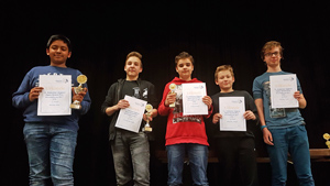Im badischen Ketsch bei Mannheim am Rhein richtet der örtliche Schachclub jedes Jahr ein großes Kinder- und Jugendturnier in der großen Rheinlandhalle aus. Acht Kinder und Jugendliche der VSG 1880 Offenbach samt zahlreicher Eltern wollten dieses Jahr mit dabei sein. Hätte die Grippewelle nicht kurzfristig zugeschlagen, wären es auch noch ein paar mehr gewesen. Von U8 bis U14 war die Konkurrenz für die Offenbacher Teilnehmer sowohl zahlreich als auch stark. Doch ausnahmslos alle Offenbacher Teilnehmer schlugen sich großartig. Nach der dritten Runde spielten überraschender Weise in allen Altersgruppen Offenbacher Kinder am ersten Brett. Zwar konnte dies nicht ganz bis zum Turnierende nach sieben Runden durchgehalten werden, doch die Ergebnisse konnten sich sehen lassen. Tom, 4. in der U14 mit 25 Teilnehmern, und Rosalie, 5. in der U12 mit 41 Teilnehmern, gelang jeweils der Sprung aufs Treppchen. Christoph verpasste diesen als 6. unter 27 Teilnehmern in der U8 denkbar knapp, Benjamin als 8. in der U10 war erfolgreichster Offenbacher in dieser Kategorie unter 50 Teilnehmern. Doch auch Lennart, Florin, Flynn und Laura gelangen gute Platzierungen und zahlreiche Punkte, so dass am Ende alle mit schönen Sachpreisen und Urkunden belohnt wurden. Die Erfolge wurden dann von einem Großteil der Familien noch in einer Offenbacher Pizzeria ausgiebig gefeiert. Für einen Teil der Offenbacher Spieler war das Turnier das perfekte Training für das Finale der Hessischen Schulschachmeisterschaft am kommenden Donnerstag. Den Kindern der Erasmus- und Mathilden- sowie der Leibnizschule drücken wir dafür alle Daumen!