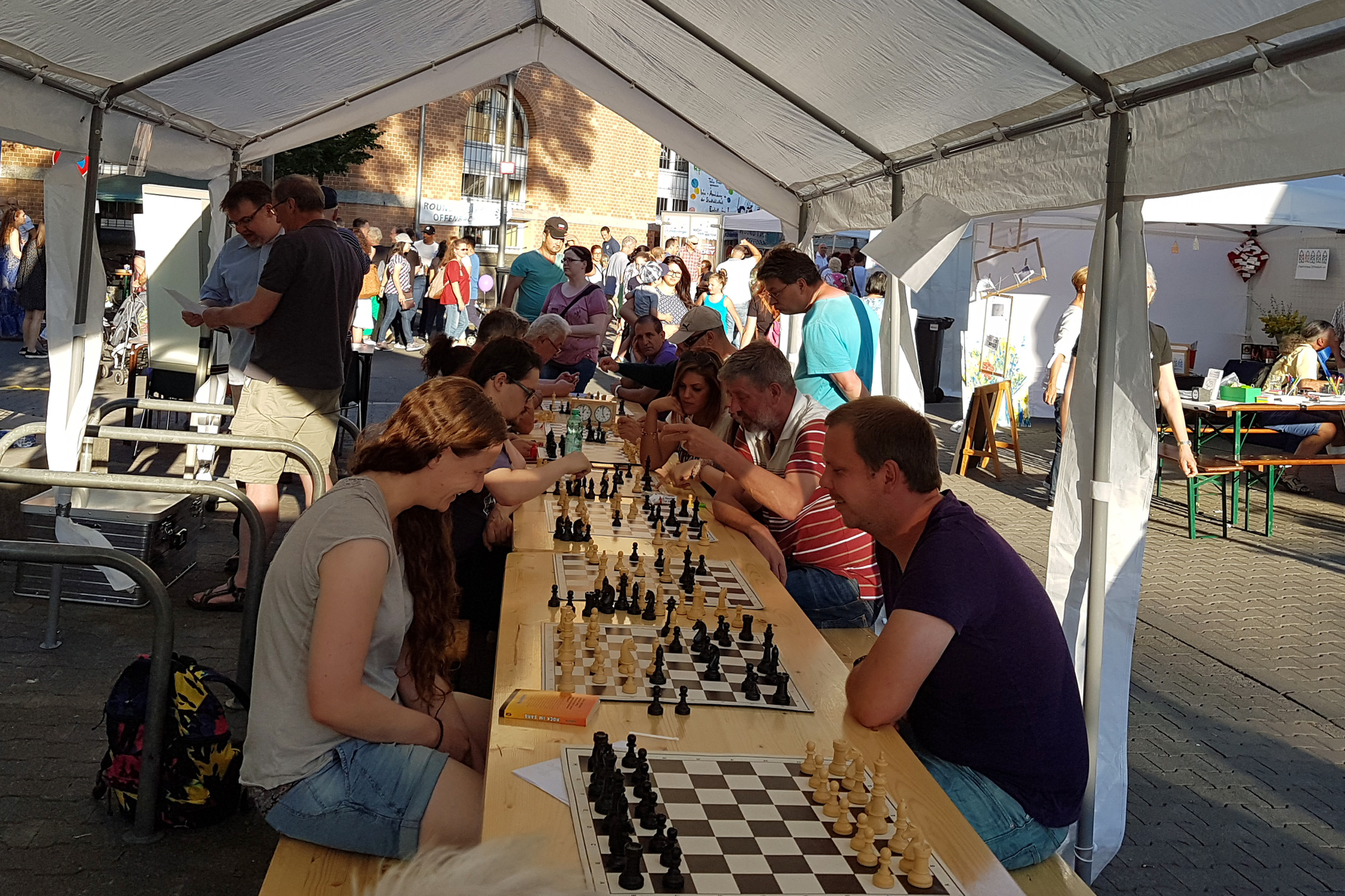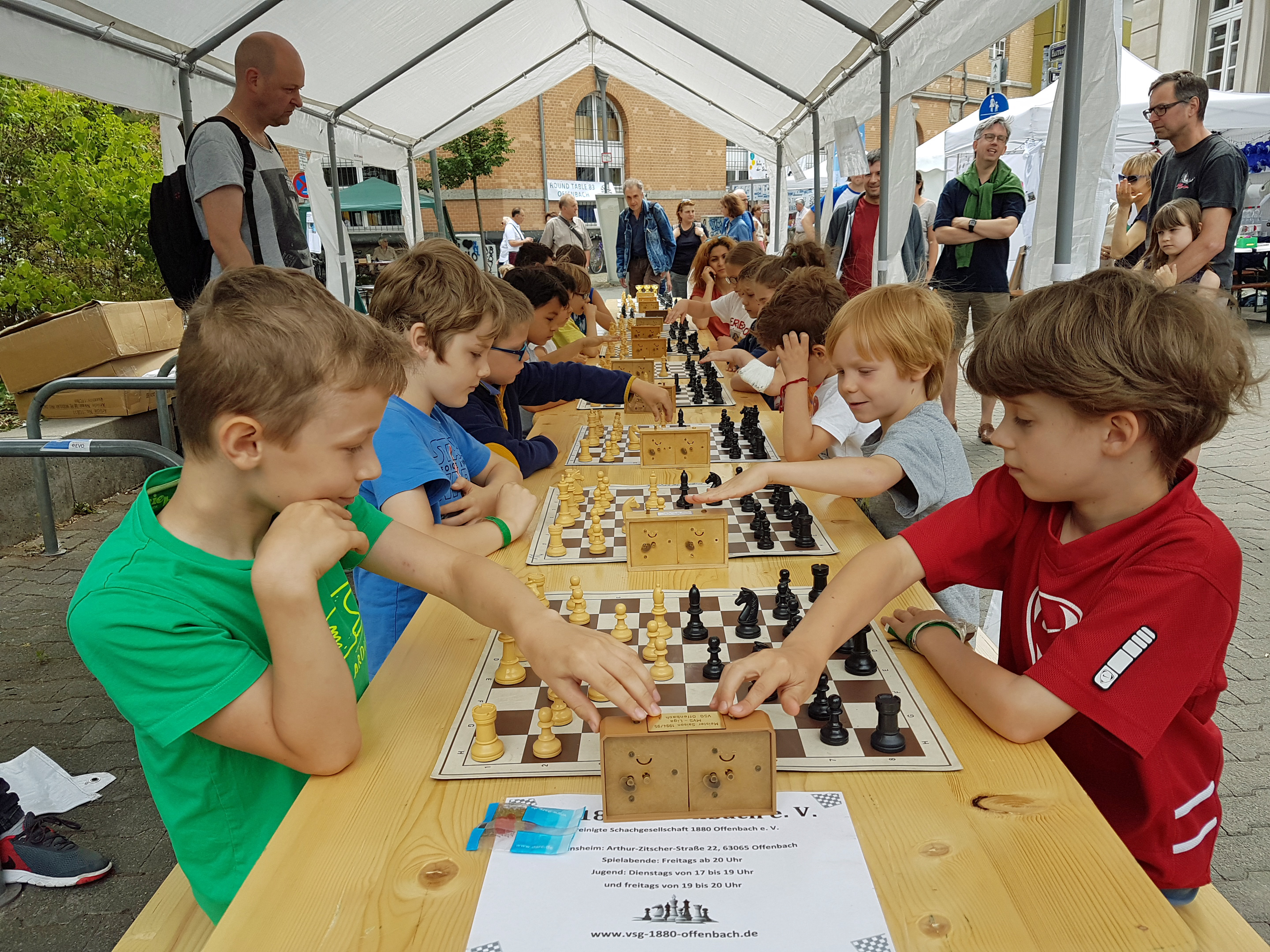 Im unmittelbaren Umfeld lockten natürlich jede Menge weitere Angebote und wie jedes Jahr eine enorme kulinarische Vielfalt. Doch gerade das Schachangebot der VSGO bot auf dem Mainuferfest eine gute Ergänzung zum Angebot der anderen Vereine, die großen Anklang findet. Der ein oder andere Besucher informierte sich auch über die Vereinsangebote und kündigte an, zum dienstäglichen Jugendtraining ab 17 Uhr in der Arthur-Zitscher-Str. 22 kommen zu wollen oder den freitäglichen Spieleabend um 20 Uhr besuchen zu wollen. Willkommen ist jeder Interessent ganz unabhängig vom Vorwissen und Können.