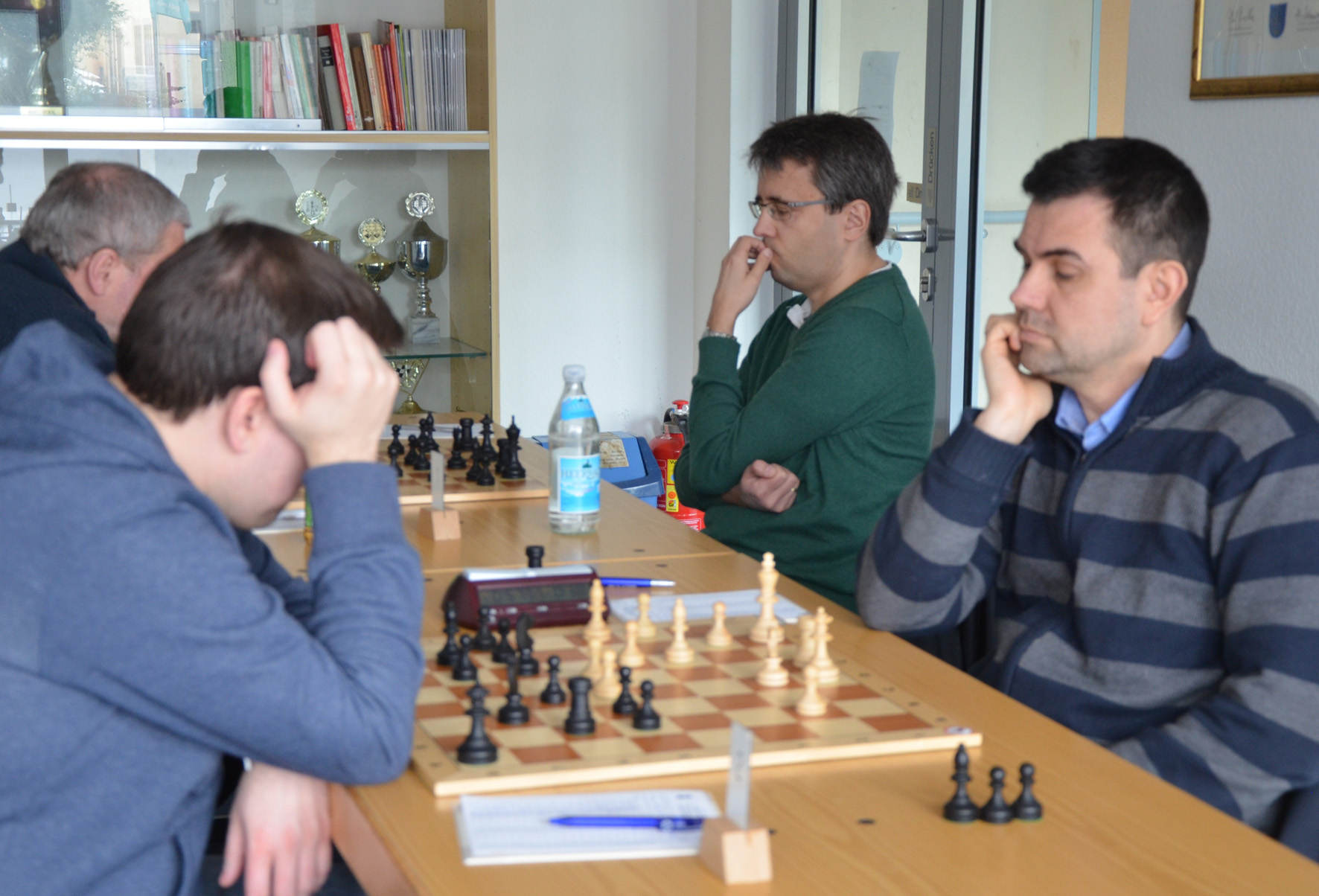 von rechts FM Dmitri Goreacinic (VSGO, Brett 2) gegen Stephan Sieber (Erfurt) und IM Nils Michaelsen gegen Dr. Bernd Baum (Erfurt)