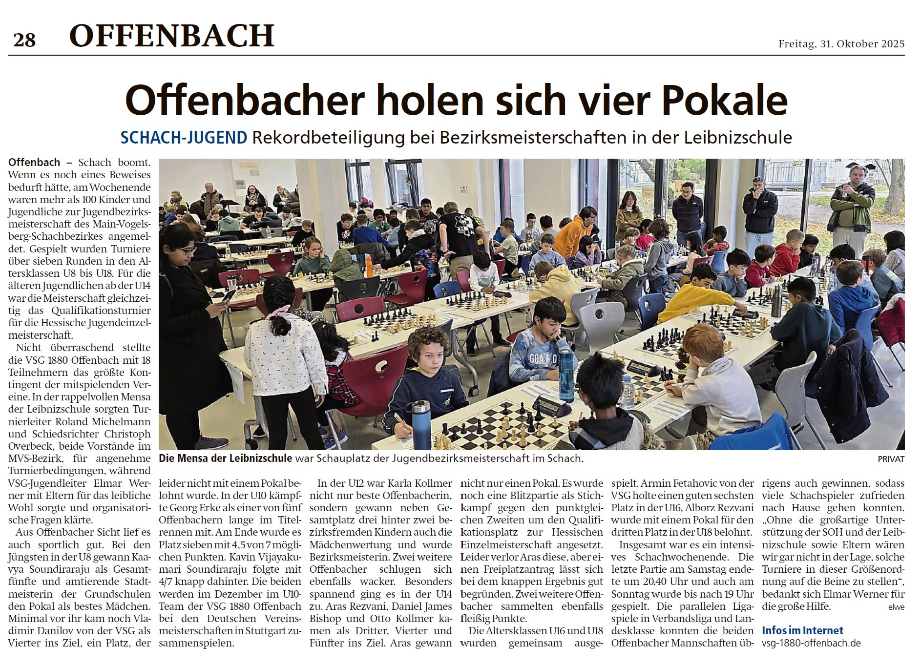 Auf S.28 berichtet die Offenbach Post über die Bezirksmeisterschaft vom vergangenen Wochenende mit Rekordbeteiligung und schönen Offenbacher Erfolgen.