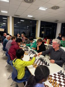 In den letzten 4 Runden ging es dann hoch her. Die internationalen Meister mussten beide überraschend Federn lassen. Michael und Frank spielten ganz vorne mit. Es wurde emotional, unter anderem über die Frage, ob ein illegaler Zug vor oder nach dem Ablauf der Zeit des Gegners ausgeführt worden war. Am Ende konnte sich Robert ganz knapp vor den punktgleichen Frank und Solonar durchsetzen. Herzlichen Glückwunsch!