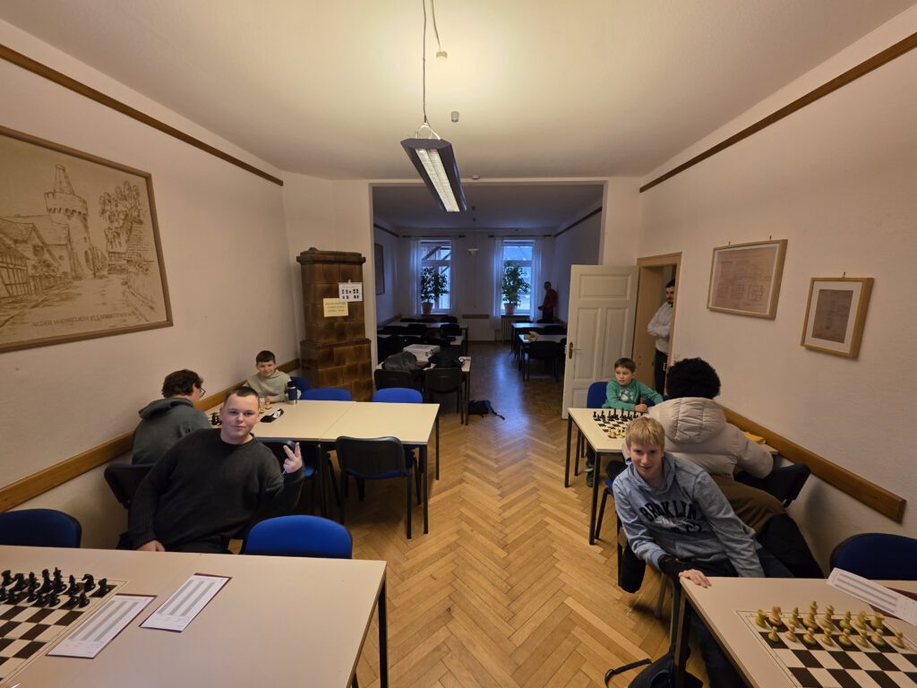 Was den beiden anderen Mannschaften an Konzentration und Geduld noch gefehlt haben mag, demonstrierte die VSGO 1 dann in der Begegnung gegen ebenfalls stark spielende Gründauer. Die VSGO 3 war schon lange wieder in Offenbach und die VSGO 2 wieder zu Hause, als es bei der VSG 1 erst in die Punktverteilung ging. Aras brachte Offenbach 1:0 in Führung. Sein Bruder Alborz erhöhte mit einem Remis auf 1,5:0,5. Bei Christian und Florin war zu diesem Zeitpunkt noch nicht viel passiert. Nach drei Stunden Spielzeit gelang Christian dann aber ein Qualitätsgewinn und technisch sauber wurde die Partie zum 2,5:0,5 verwertet. Der Mannschaftssieg stand somit fest. Bis kurz nach 18 Uhr und mehr als vier Stunden Spielzeit sollte Florins Partie dauern. Zwar hatte Florin einen Mehrbauern, aber die Stellung sah sehr remislastig aus. Florins Gegner bewertete die Stellung jedoch als verloren und streckte die Segel, 3,5:0,5 für Offenbach. Mit dem Sieg ist die VSGO 1 nun alleiniger Tabellenführer mit einem Punkt Vorsprung vor drei punktgleichen Teams, darunter Frankfurt Nord aus der Parallelpartie. Mal schauen, wer am 22. Februar in der nächsten Runde zugelost wird.