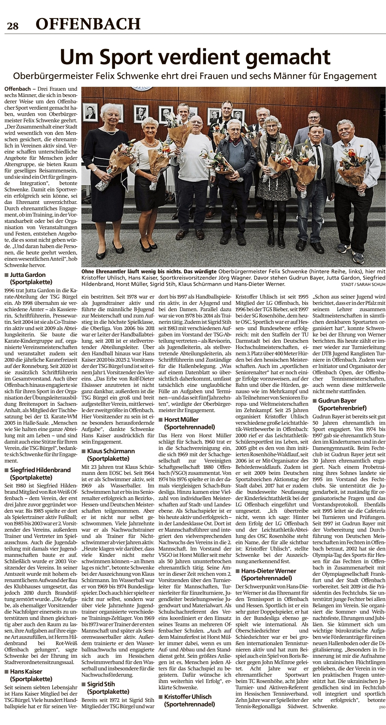 Auf S. 28 berichtet die Offenbach Post von der Verleihung der Silbernen Sportehrennadel u.a. an Horst Müller.