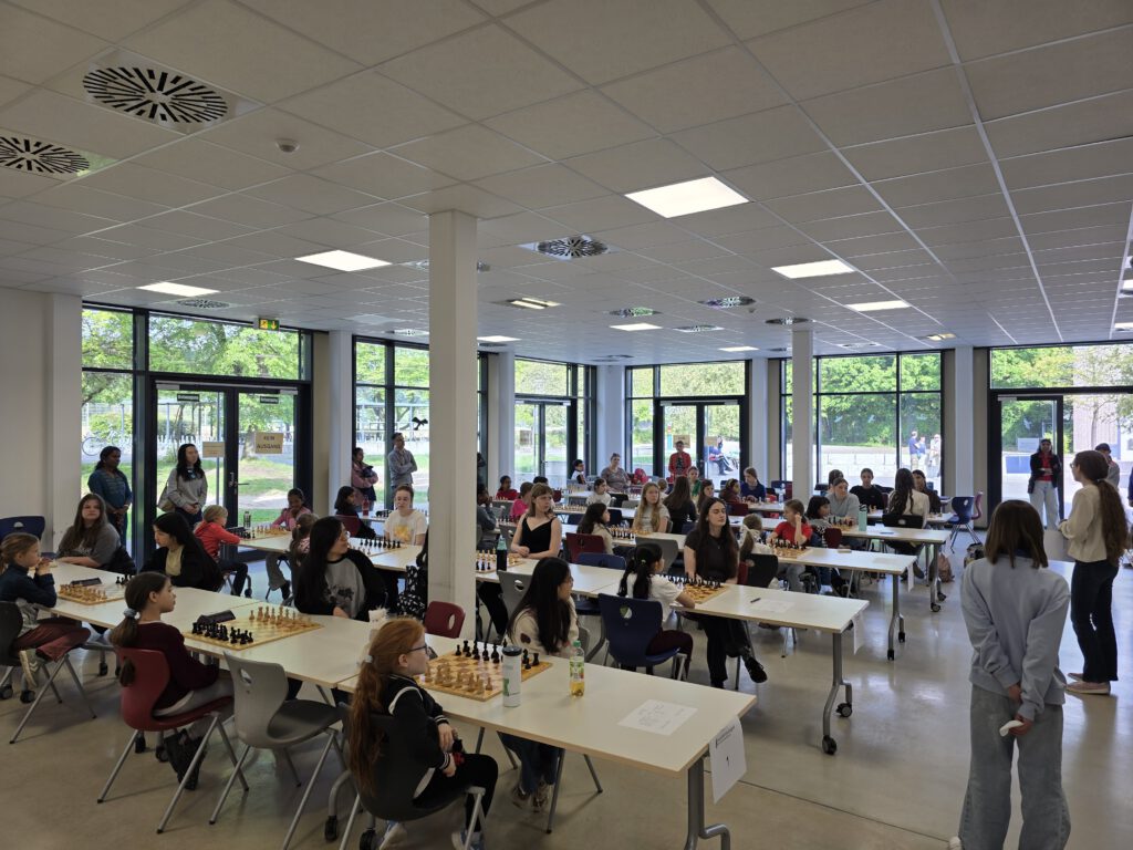 Unser Spielerinnen Rosalie, Sarah, Sophie, Karla und Kaavya (siehe Titelbild) hatten sich nicht weniger als den Titel zum Ziel gesetzt. Doch den wollte dieses Jahr auch Oberursel erringen, die nach DWZ-Wertung auch die stärkste Mannschaft des Turnieres stellten. Dabei beide Vereine alle sonstigen Begegnungen deutlich für sich entscheiden konnten, musste das direkte Duell im Turniermodus jeder gegen jeden die Entscheidung bringen. Und dieses fiel eindeutig mit 4:0 für die Oberurseler Spielerinnen aus. Wir gratulieren herzlich zum Titel!