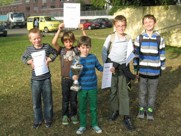 (EW) Am Samstag, den 22.9.2012, fuhren fünf unserer Jugendspieler in Begleitung von Udo Lanz und zwei Eltern zu den Herborner Jugend-Schach-Open. Unter rund 200 Kindern waren wir in den Altersgruppen U8, U10 und U12 vertreten. Besonders freute sich U8 Spieler Noah nach fünf Punkten aus sieben Runden über einen großen Pokal für den hervorragenden dritten Platz unter den 32 Kindern dieser Altersgruppe. Wir gratulieren herzlich zu diesem tollen Erfolg! Gero, erstmalig bei einem so stark besetzten Turnier mit vielen Hessenmeisterschaftsteilnehmern dabei, konnte ebenfalls lange in der Spitzengruppe mitspielen, musste sich dann aber im vereinsinternen Duell gegen Noah geschlagen geben und belegte mit 3,5/7 einen guten 15. Platz. Tom mit 4/7 und einem 22. Platz unter 51 Teilnehmern in der U10 sowie Sebastian und Benedikt mit jeweils 3,5/7 und dem 24. bzw. 26 Platz in der U12 unter 48 Teilnehmern konnten diesmal noch nicht wieder ganz an ihre Form im ersten Halbjahr anknüpfen und blieben somit im Mittelfeld. Ein herzliches Dankeschön geht an die Schachjugend Herborn 1998 e.V. für die gelungene Organisation.Neben dem Schachturnier konnten die Kinder in den Pausen u.a. auch Fußballspielen oder ihr Geschick an einer „Schokokussschleuder“ probieren. Alle Ergebnisse sowie weitere Fotos werden in Kürze auf der Homepage der Schachjugend Herborn veröffentlicht.