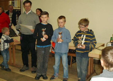Besondere Erwähnung verdient Aaron. Vor einer Woche kam er zum erstenmal in den Schachverein, fünf Tage später spielte er nun sein erstes offzielles Turnier. Ein echter Sprung in das kalte Wasser also. In der kombinierten U14/U16-Wertung gelangen ihm zwei respektable Siege in sieben Partien, auf denen sich aufbauen lässt.