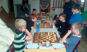 (ew) Zum Saisonstart am 1.9.2013 ließen Tom, Benedikt, Tim und Dominik nichts anbrennen. Bei der gastgebenden SC 1952 Obertshausen 2 gelang am ersten Spieltag ein ungefährdeter 3:1 Erfolg. Auch das verlorene Brett stand lange auf einem klaren Gewinn für die VSG, bis ein leichter Fehler das Blatt wendete. Drei Punkte bedeuten nach der ersten Runde sogar die, wenn auch punktgleiche, Tabellenführung mit drei weiteren Teams der Liga. Weiter geht es am 10.11. mit Heimrecht gegen die SK Gründau 3.