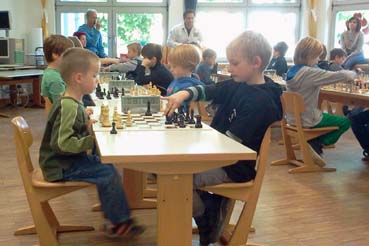 (ew) Der TuS Niederneisen und die Grundschule Niederneisen veranstalten traditionell am 3. Oktober ihr Schachturnier für Kinder, Jugendliche und Erwachsene. Parallel veranstaltet der Elternverein einen Schulhofflohmarkt und organisiert die kulinarische Verpflegung der Teilnehmer und Besucher. Dieses Jahr fuhren Benedikt, Kolya, Dominik und Florin mit. Dominik spielte ein großartiges Turnier und belegte mit 6 aus 7 Punkten unter 18 Teilnehmern in der U8 einen hervorragenden 2. Platz, der mit einem schönen Pokal belohnt wurde. Lediglich gegen den verdienten Sieger dieser Altersgruppe musste er einen Punkt abgeben. Florin, erstmals bei einem Vereinsturnier dabei, gelangen 2 Punkte, über die er sich genauso freute wie über ein kleines Präsent, welches er als jüngster Teilnehmer in der U8 erhielt. Besonders spannend und eng ging es in der U12 zu. Unter 34 Teilnehmern legte Benedikt in den ersten drei Partien einen verlustpunktfreien Start hin. In der vierten Runde gab er einen Punkt gegen den späteren Sieger ab und fand sich nach 6 Runden mit 5 Punkten auf einem hervorragenden 2. Platz wieder. In der Schlussrunde hätte ein Remis für einen Pokal gereicht. Doch leider gab er das Spiel ab und belegte am Ende einen immer noch sehr guten 6. Platz in einem sehr starken Teilnehmerfeld mit zahlreichen Spielern mit viertselliger DWZ. Ebenfalls in der U12 ging Kolyà an den Start, sein erstes Vereinsturnier für die VSG. Mit 2,5 aus 7 erreichte er den 26. Platz. Beim nächsten Mal kommt sicherlich schon der ein oder andere weitere Punkt hinzu. Alle Kinder freuten sich über ihre Preise, die sie aus einem riesigen Kontingent aussuchen konnten. Auch die Fahrer, Andreas und Elmar, waren beim Betreuerturnier gut beschäftigt und bringen zusammen vier Punkte mit nach Offenbach. Ort, Räumlichkeiten und Wetter waren ideal, so dass die Aar Open als einem der schönsten Jugendturniere im weiteren Umkreis wieder alle Ehre machten. Da lohnt sich auch die vergleichsweise weite Anfahrt.