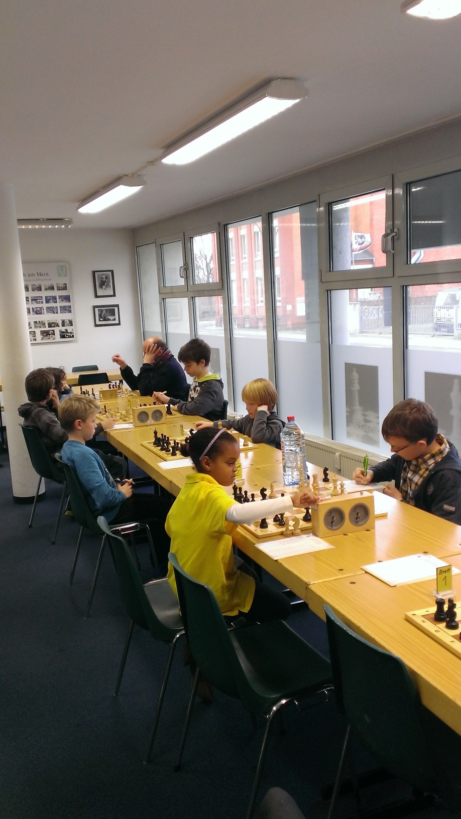 (al) Dank eines ungefährdeten 3:1 gegen Friedberg 1 rangiert unsere U12-Schülermannschaft nun in der Schülerliga mit zwei Siegen und einem Remis hinter dem verlustpunktfreien Tabellenführer „Rochade 69 Diez“ auf einem hervorragenden zweiten Platz. Leider blieb in der Partie gegen Friedberg unser erstes Brett unbesetzt, was den verloren Punkt erklärt. Dafür kam Kolya erstmals in der Mannschaft zum Einsatz, was gleich mit einem Punktgewinn belohnt wurde. Auch Dominik und Benedikt konnten punkten, so dass der Sieg völlig verdient eingefahren wurde. Marc nahm erstmals an einem Mannschaftspiel teil, allerdings war er noch nicht für die Liga spielberechtigt, so dass es hier bei einem „Trainingsspiel“ blieb.